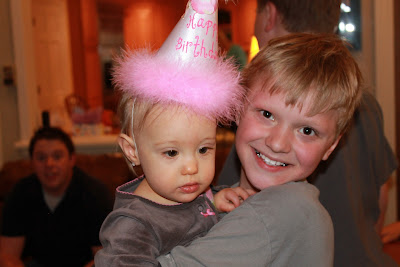 Chloe's Birthday was on Tuesday the 23rd. Because Aarons birthday is four days after hers, we ended up having a birthday party for both of them the Saturday before their birthdays. It was a lot of fun but I don't think either of them knew what was going on. Chloe enjoyed everyone singing happy birthday, but neither of them knew exactly what to do with the presents, so they got a little help.